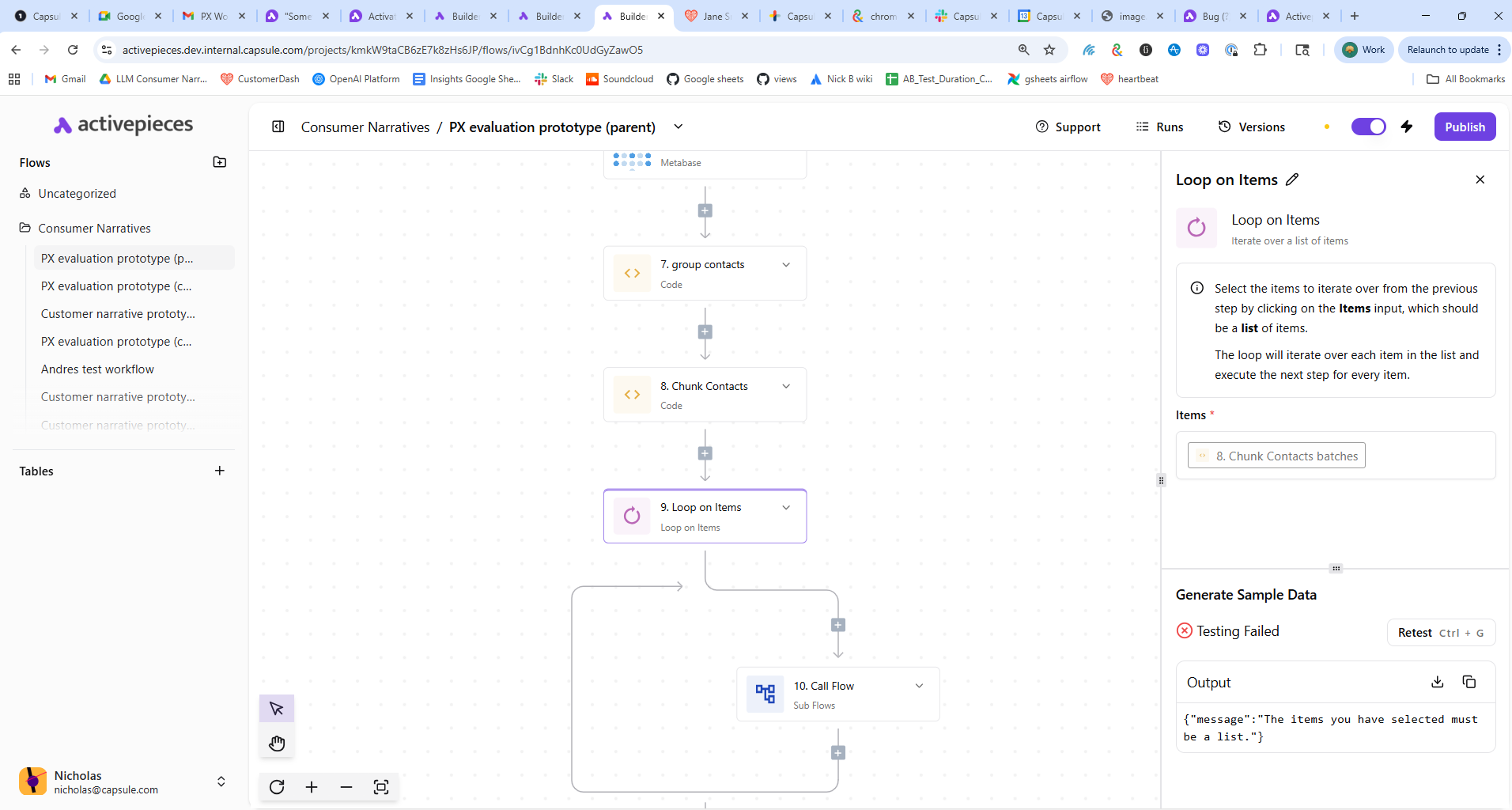 When testing each step in the flow, (which is required so that I can use the output of this loop as a payload to pass to a child flow), this step fails: