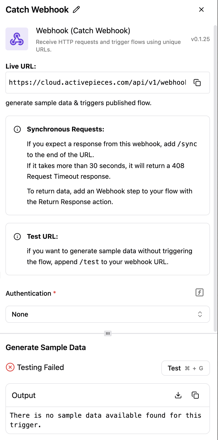 I created a Google script with Live URL, Google script does show it sent an data to webhook, however in ActivePieces it’s waiting forever and fails always. What I am missing here?