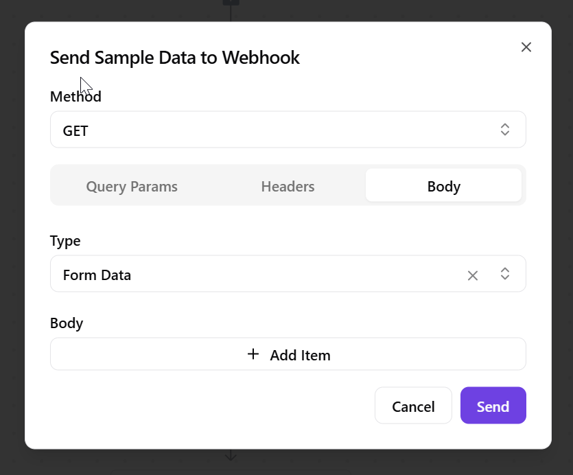 It’s really unclear what to do from here. Does it require Body to be inserted, or will clicking Send after selecting form data choose the most recent result?