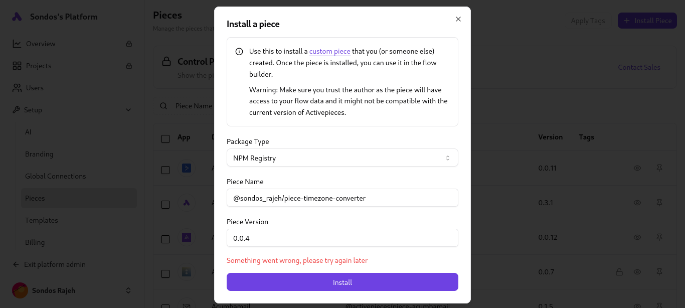 While installing a new public custom package I created the request timeouts with a 502 error.