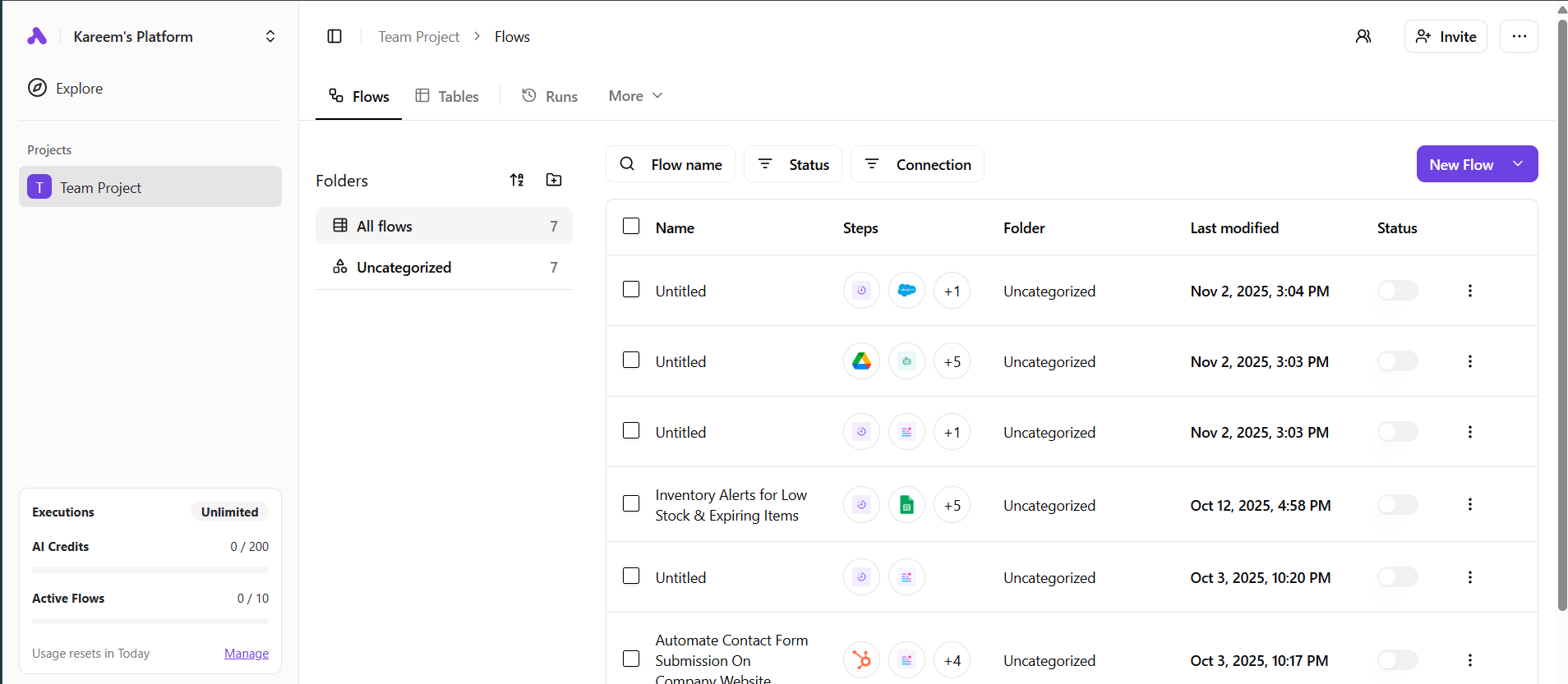 Activepieces is built for teams who want to collaborate and automate away their no-joy work together. This redesign puts greater emphasis on project-level navigation, helping your team stay organized, aligned, and in control.