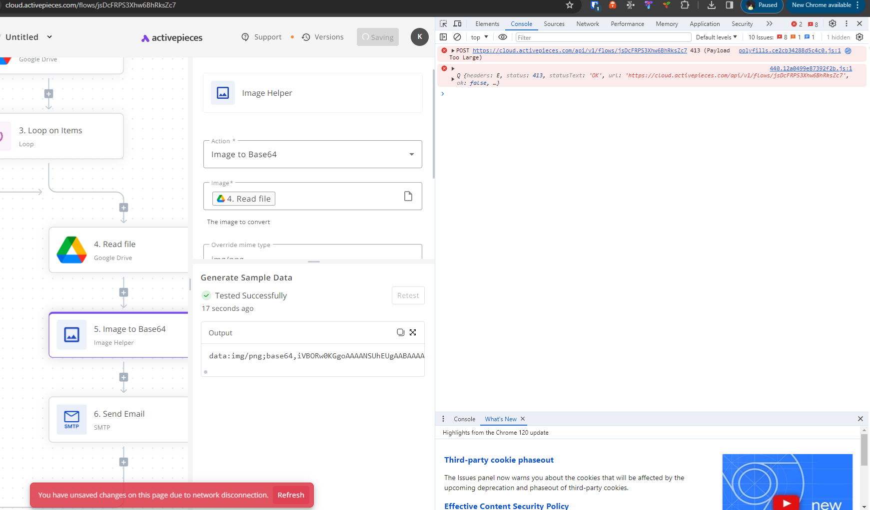 Hi @PFernandez98, The first photo is from homelab following your your directions about. I am still getting the unsaved error after running the prompt. and in the ouput in photo, it says Request entity too large?