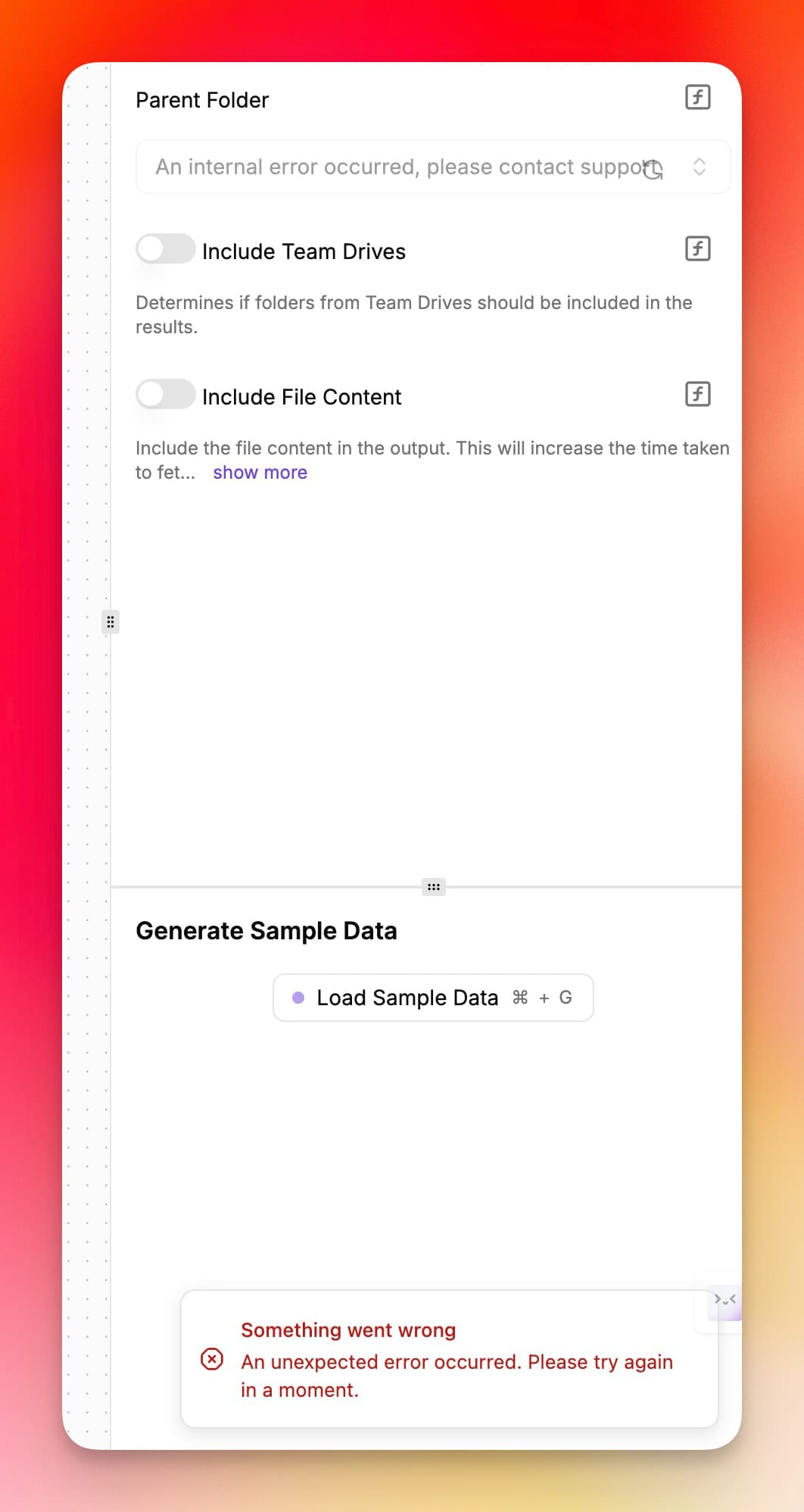 I’m trynig to connect to Google Drive, and while listing the “Parent Folder” i get this warning. No idea what the issue is.