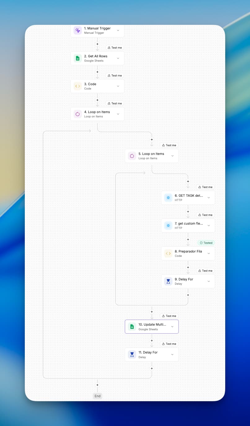 I am trying to build an automation to sync a large dataset (approx. 2,000 rows) from Google Sheets to an external API, and then update the Sheet back with new data. To avoid rate limits and optimize performance, I am processing the rows in batches of 50.