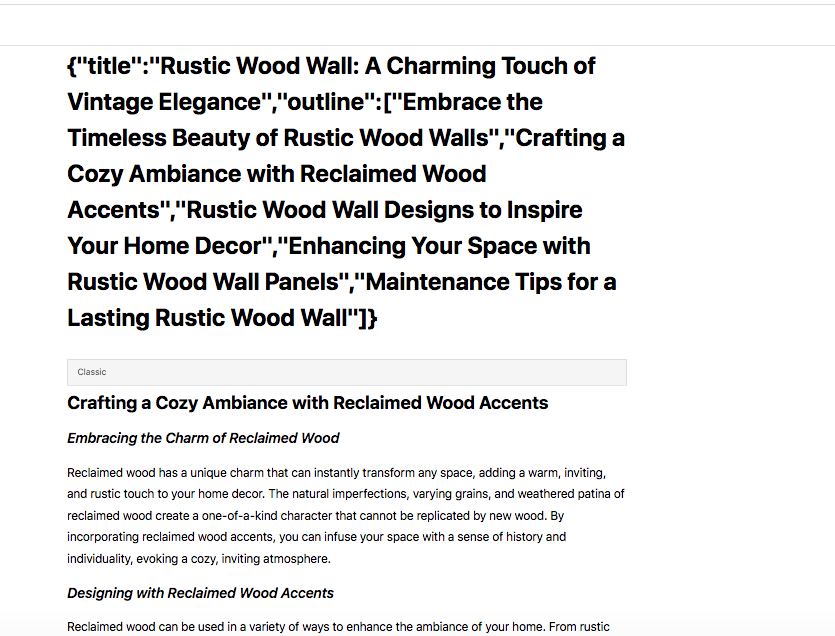 I am using Claude’s template to generate a post in WordPress.
