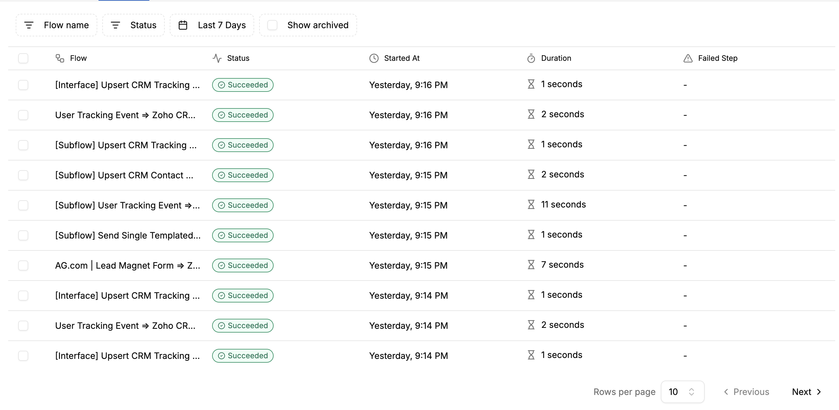 However, we can see evidence in our other systems, like our CRM, that these flows are actually running. For example, some flows create events in our CRM, and we’ve seen no disruption in these events over the last 9 hours.
