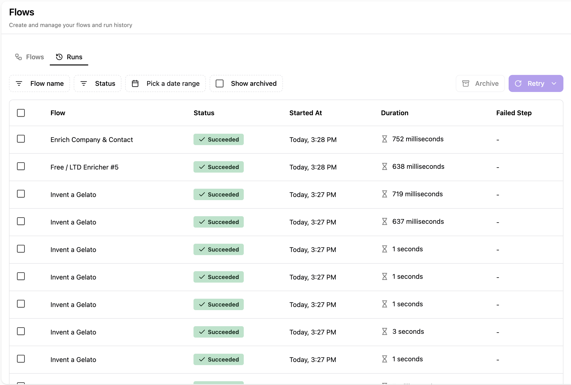 Now, Runs and Issues live together in one tab, making it easier to see everything that happens in your flow. Instead now you can even archive failed runs to keep your logs clean.