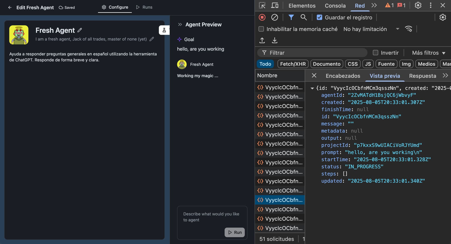 hello, are you working agentId:Z2vMATdH1BsjQC6jWbvyF- I’m using the “Test Agent” preview in the editor.